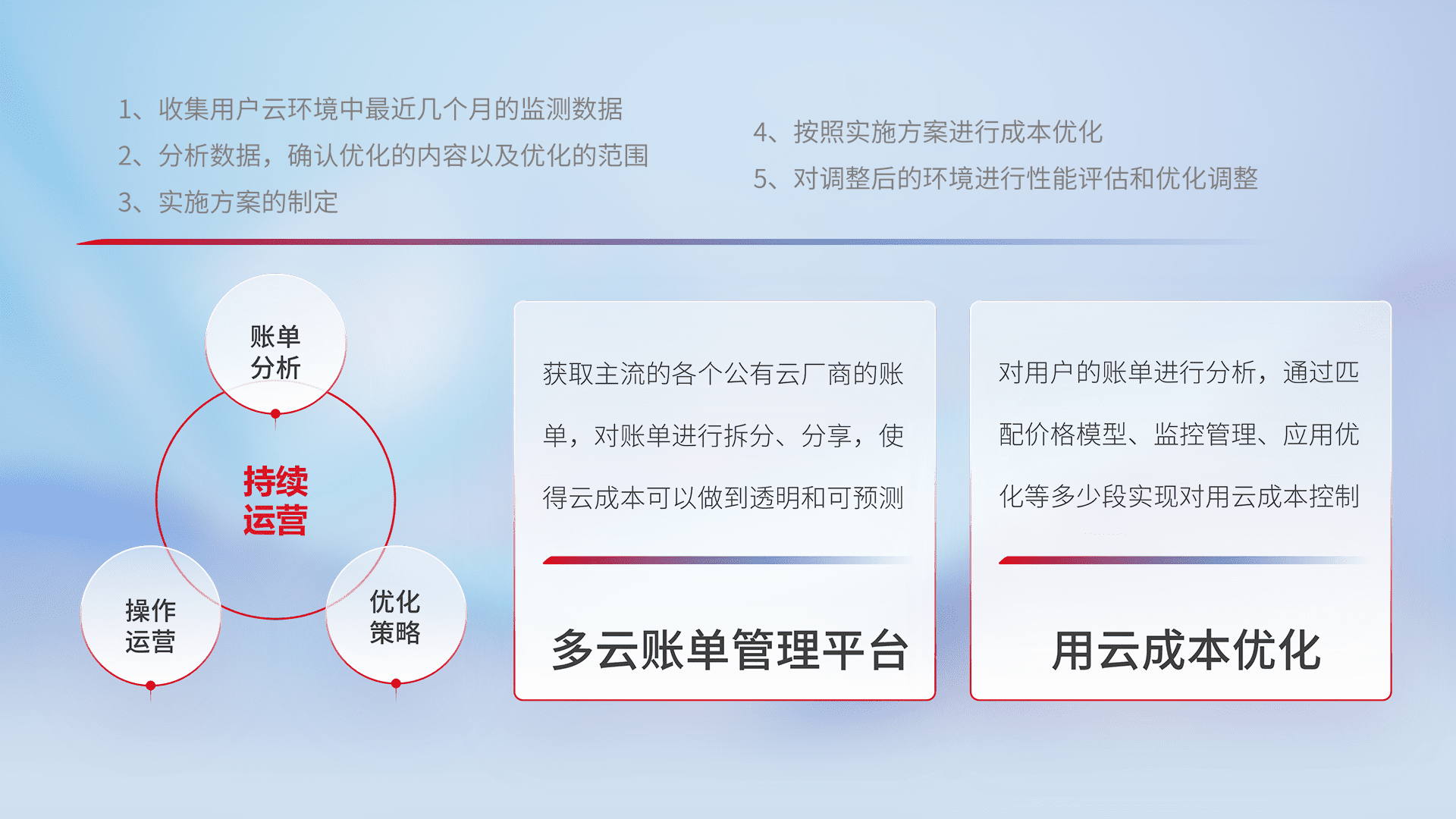 运用智能化工具分析云资源,,提供日常费用可视化工具,,,自动账单拆分,,,,成本优化云上费用,,降本增效。。