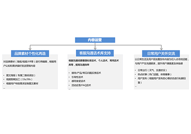 相较于APP、、、、小程序、、公众号的以品牌事件为主的单一触点异步沟通,,,,可以就每个用户情况,,进行即时沟通。。。。在对话窗口,,,围绕用户需求,,由运营顾问判断,,,拉起各类触点上内容进行服务,,,致力于满意度提升。。。。